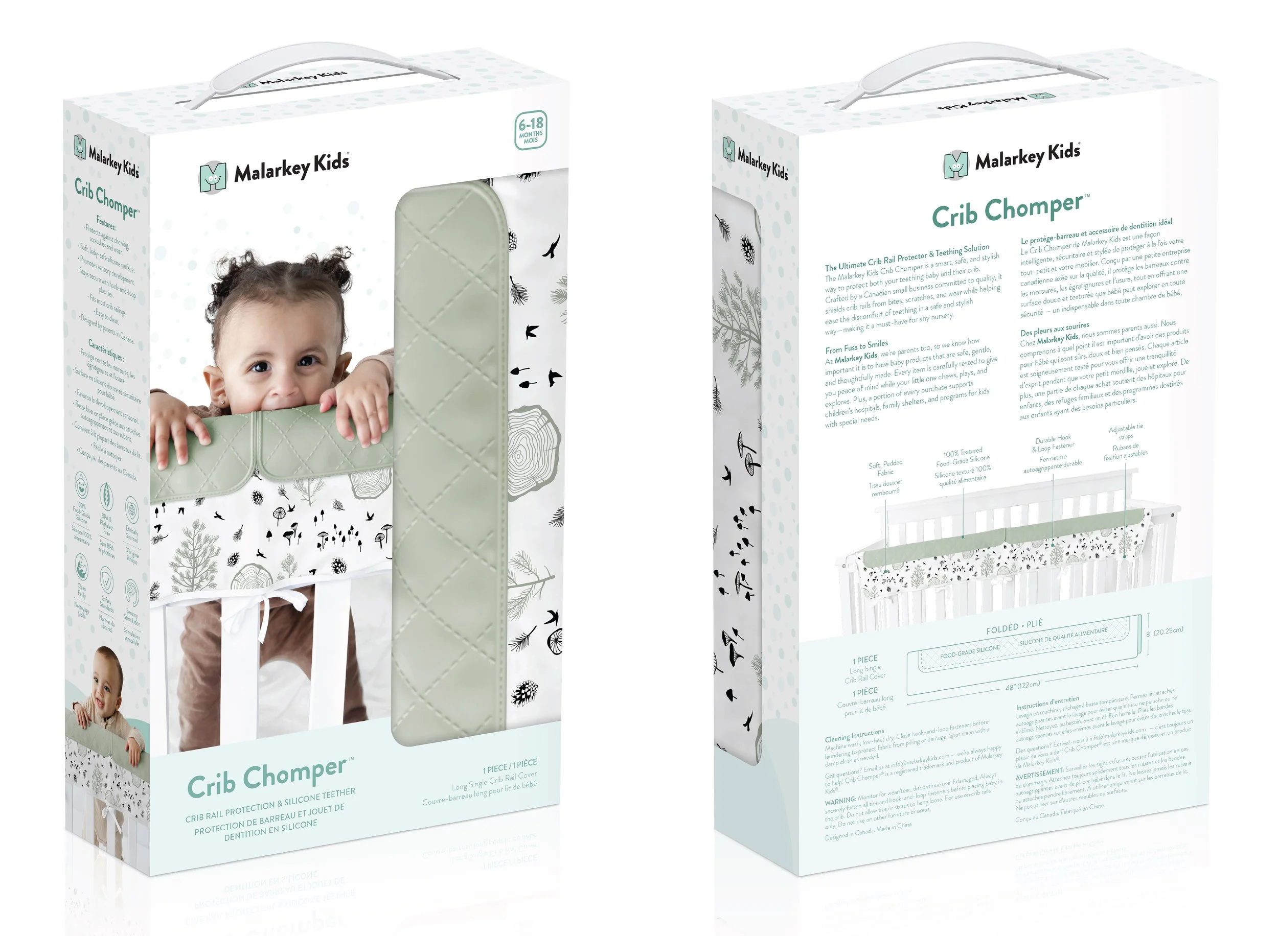 Penn Design Group partnered with Malarkey Kids to develop packaging for The Munch Bunch Gift Set as well their Crib Chomper product. These packages were designed with a clean, approachable structure, a gentle color palette, and window that allows the product to stand out. Lifestyle photography was included to reassure parents by showing real use, and bilingual English/French copy was added to extend market reach and reflect the brand’s Canadian roots.