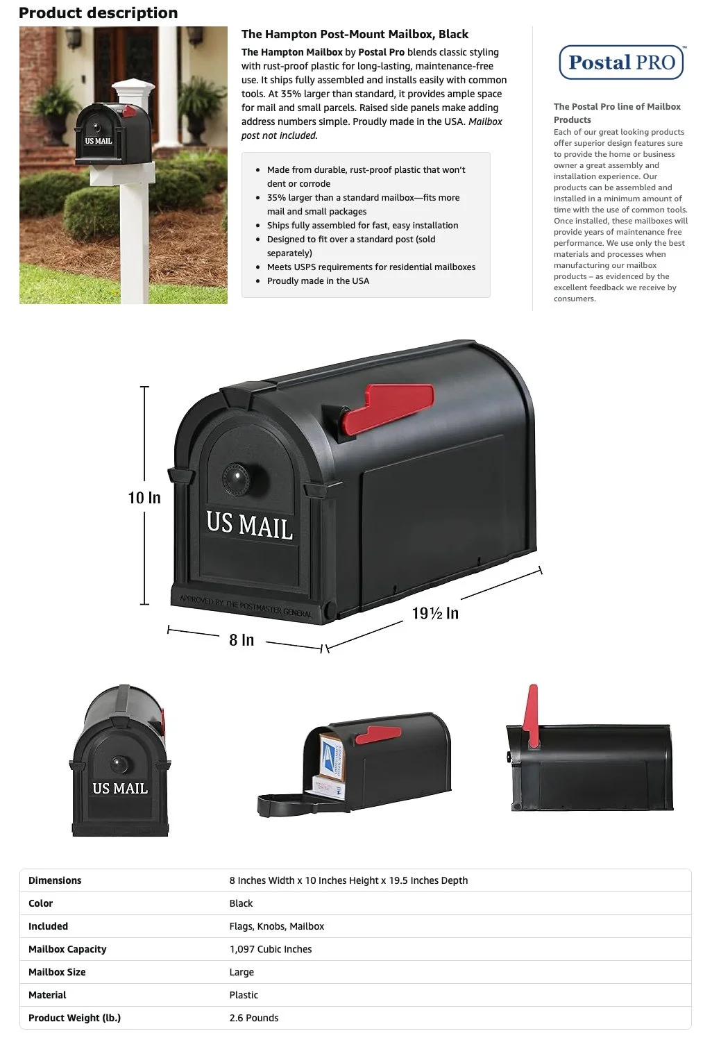 Penn Design Group partnered with Postal Pro to build a cohesive Amazon and retail presence that reinforces the brand’s Made-in-USA quality and durability. Our work included the Amazon storefront, A+ content, infographics, and videos, all designed to clearly communicate product strength, homeowner appeal, and real-world use. Lifestyle photography and feature-driven visuals help guide purchase decisions and build confidence online.